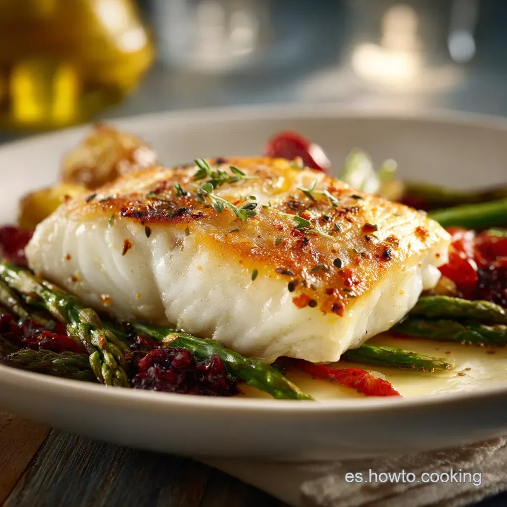 Sí, puede usar bacalao o lenguado, pero ajuste el tiempo ligeramente. Los pescados más gruesos como el bacalao necesitarán unos 2 minutos más de cocción. Si usa uno muy fino, como el gallo, redúzcalo a 8 minutos para evitar que se reseque.